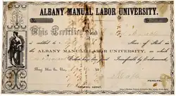 - ^ Annual Catalogue of the Officers and Students of the Albany Manual Labor University, 1855-56. George S. Walsh Printers: Athens, Ohio. 1856. p. 7.