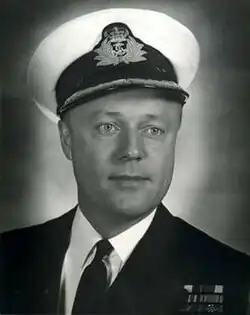 After the war he remained in the Royal Canadian Navy and was eventually promoted to Commander and given command of the destroyer HMCS Haida and the officers training school HMCS Venture before retiring.