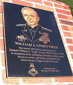 On 18 April 2009, the drill field at the center of the University of North Georgia's campus was renamed the William J. "Lipp" Livsey Drill Field in Livsey's honor. A commemorative plaque bearing Livsey's likeness was added near the reviewing stand.[3]