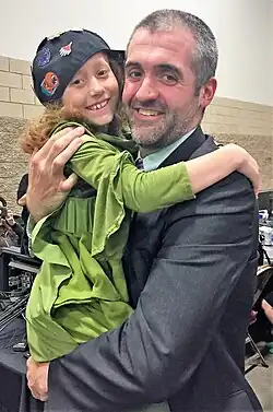 ![]() Jensen (right) with young competitive Magic player Dana Fischer in 2019 | |