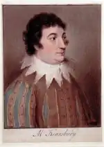 Keasberry was "brought up to the china business in London", but took instead to "the more alluring profession of the stage".[2] He joined the Edinburgh theatre in 1755,[3] and from 1757 to 1795 was associated with the Orchard Street Theatre, Bath, as both actor and manager,[4] taking over as manager in 1760,[3] Outside Bath, he also acted in Bristol, London, and Richmond.[3] a role he shared with William Wyatt Dimond.