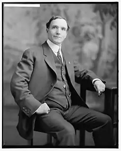 La Follette was a member of the World's Fair Commission and had charge of the Washington State building at the Chicago Exposition in 1893.[11][12] He served as a member of the State House of Representatives from 1899 to 1901.[13] He also served on the School Board and was an active member of the Grange. He was elected as a Republican to the Sixty-second and to the three succeeding Congresses (March 4, 1911 to March 3, 1919). He was active on the House Committee on Public Lands and engaged deeply in land use and water issues. His policy interests reached far beyond the region he represented in the Pacific Northwest. He fought for the passage of bills that brought water to San Francisco[14] and the creation of the National Park Service.[15] He joined with his cousin, Robert M. La Follette in opposing President Woodrow Wilson's foreign policy decisions, and like his cousin voted against declaring war on Germany. For much of the time he was in Congress, the two LaFollette families shared a large house that he had purchased in Mount Pleasant, Washington D.C.[16] The house became a center for debate and discussions of the great issues of the day as a steady stream of politicians, policy makers, academics, artists and labor and business leaders debated late into the night.[17] In 1918 he ran unsuccessfully for renomination in the Republican primary.