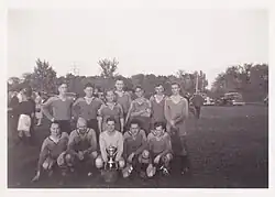 Promoted to Constable, in Regina Higgitt supervised general criminal files and engaged in active police investigations, including conducting examinations of witnesses.[10] With the outbreak of the War, and at the age of twenty-two, he was transferred to Ottawa and put immediately into intelligence and counter-intelligence. While assigned field investigations over the War years, Higgitt married a nurse, Evelyn Maude Pyke, of Lunenburg, Nova Scotia, in 1944. He also played on the RCMP basketball team in the Ottawa YMCA Basketball league, and on the RCMP soccer team in the Ottawa and District Football Association league.[11][12] He also represented the RCMP in marksmanship tournaments.[13]