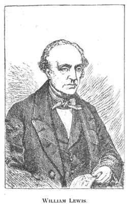 Born in Birmingham, William Lewis moved as a young man to London where he worked for a merchant for a short period. He became a student of chess player Jacob Sarratt, but in later years he showed himself to be rather ungrateful towards his teacher.[1] Although he considered Sarratt's Treatise on the Game of Chess (1808)[3] a "poorly written book", in 1822 Lewis published a second edition of it three years after Sarratt's death in direct competition with Sarratt's own superior revision published posthumously in 1821 by Sarratt's poverty-stricken widow. In 1843, many players contributed to a fund to help the old widow, but Lewis' name is not on the list of subscribers.[1]
