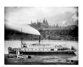 In 1877, Moore returned yet again to the Fraser River and ran the Gertrude against John Irving's Reliance, but in 1878 he returned to the Stikine in time to fight off more new competition there, the Nellie owned by John Calbreath, the packer and storekeeper who'd been responsible for bringing the infamous Cariboo camels to the Cariboo in 1862. Now that there was competition in the Cassiar, his thoughts returned to the Fraser again and the idea of running against Irving on the route from New Westminster to Yale.