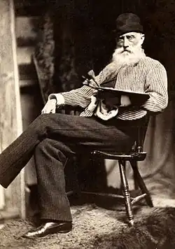 "The greatest of Boston painters", writes art historian G. W. Sheldon in his American Painters, "and one of the few really great American painters, Mr. William Morris Hunt, was born in Brattleboro, Vermont." While a friend and student of Millet, "Hunt is an entirely original artist, and every picture of his is a spontaneous and independent product."[15] In a bit of art history revisionism, some scholars are now re-examining Hunt's powerful pull on other early New England artists, many better-known.[16] Hunt was an important figure in New England arts and society. Besides collecting himself, Hunt encouraged other Boston collectors to buy works by European artists such as Millet, Monet and others.
