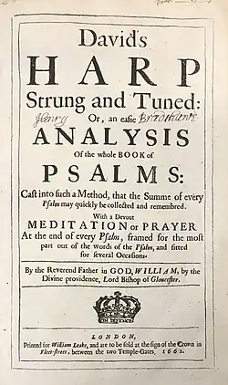 - David's Harp Strung and Tuned: Or, An Easy Analysis of the Whole Book of Psalms, 1662.