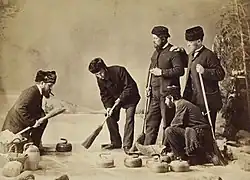Notman was highly regarded by his colleagues for his innovative photography, and held patents for some of the techniques he developed to recreate winter within the studio walls. He could simulate the presence of ice and snow in the studio, replicate fire using magnesium flares, and create naturalistic photographs using an innovative composite technique.[6] His professional renown and financial success may largely be attributed to his winter scenes.[7] He won medals at exhibitions in Montreal, London, Paris, and Australia. Notman's celebrity was also bolstered by his portraits of famous subjects such as one of Sitting Bull (Sioux name Tatanka Iyotake) and Buffalo Bill (born William Frederick Cody).[6]