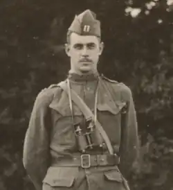 ![]() As commander of Company B, 2nd Balloon Squadron, in Forêt de la Reine, France, July 1918 | |