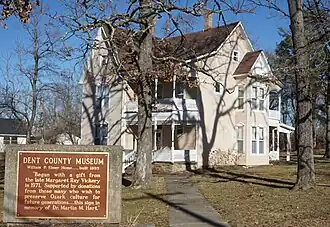 Elmer married Amie Adelmann (1872-1963) on December 9, 1896. She was the daughter of Franz and Frances (Duckworth) Adelmann. W. P. and Amie Elmer had nine children: William Doss Elmer, Victorene Dale Elmer, McVeigh Adelmann Elmer, Billie Ruth Elmer, Vivian Katrina Elmer, Helen Willene Elmer, Amelia Imogene Elmer, Lucille Elmer, and Dorothy Elizabeth Elmer. He died in Salem, Missouri, May 11, 1956. He was interred in Cedar Grove Cemetery in Salem, Missouri. His home from 1906 until his death was converted into the Dent County Museum.