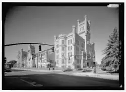 For forty years, the offices of the firm were in the Vaughan Building on Custom House Street, completed by Walker & Gould in 1879. They remained in the building even after it was gutted by fire in 1884, destroying their property.[5] During the year-long reconstruction of the building they were located in the Daniels Building across the street.[6] In 1921 they relocated to Hall's Building on Weybosset Street, where they remained until Arnold dissolved the firm.[7] Throughout the firm's history, it was known for the design of public buildings including state armories, town and city halls and public schools. All of the Walkers had important political connections which enabled them to obtain these commissions. Though never the most important part of their practice, the Walkers also designed churches, private homes, commercial buildings and movie theatres, the latter of which may have grown from their experience with wide-span structures in armories.[2]