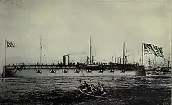 New Ironsides sailed January 24, 1865, up the James River to Bermuda Hundred to protect the stores of the Army of the Potomac from a threatened raid by Confederate rams during the siege of Petersburg. Radford took charge of the flotilla assembled there and coordinated with Generals Ulysses Grant and Edward Ord. Radford transferred his flag to Dumbarton when New Ironsides was sent to Norfolk Naval yard February 18, 1865, for repairs. With the end of war near, Dumbarton departed from the James River March 22, 1865, and officers and crew were detached upon arrival at the Washington Navy Yard.[2]: 293–302