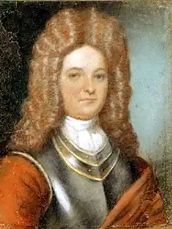 Colonel William Rhett (4 September 1666 – 12 January 1723) was an English-born planter, politician and military officer who moved to the Carolinas, where he spent the majority of his life. Born in London, Rhett emigrated to North America in 1694, accompanied by his wife Sarah. He gradually acquired ownership over several slave plantations which specialized in producing rice. Rhett also sat in the South Carolina General Assembly and served in the colonial militia; in 1718, he commanded two chartered sloops and defeated the Barbadian pirate Stede Bonnet in the Battle of Cape Fear River.[1][2]