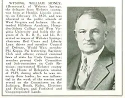 William Sidney Wysong (born Hamlin, West Virginia, February 13, 1876; died Beard Heights, West Virginia, April 26, 1963) was an American lawyer and politician. He served as the 21st Attorney General of West Virginia from May 25, 1942, to January 13, 1943.