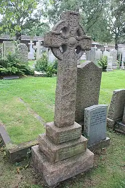 He is buried in the 20th century extension to Dean Cemetery near its centre.