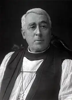 Born in 1862 he was educated at New College, Oxford[5] and ordained in 1886.[6] He began his ecclesiastical career with curacies at Lyndhurst and Stalbridge[7] and was then Diocesan Lecturer for Lichfield. After this he held incumbencies at St Matthew's Church, Walsall[8] and then St Peter's, Cranley Gardens,[9] a post he held until his consecration to the episcopate.[10] He died on 30 June 1941.[11]