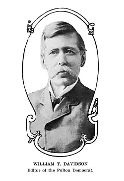 William Taylor Davidson (February 8, 1837 – January 3, 1915) was the owner and editor of the Fulton Democrat newspaper from 1858 to 1915. He was a staunch supporter of Stephen A. Douglas and a strong advocate for the views of the Peace Democrats or Copperheads during the American Civil War.