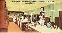 By 1892, Rawleigh was successful enough to start advertising and soon after that, he mortgaged his home, borrowed money from all available sources, and started his first small factory and laboratory in a rented building in downtown Freeport, Illinois. Advertising was a major influence for Rawleigh, in 1892 he put together a booklet explaining his products and distributed it widely. This booklet was to be the forerunner of the famous Rawleigh Good Health Guide, Almanac and Cookbook, a book that continued to be published until 1960, nine years after his death. It was a guide for the whole family with the range of Rawleigh products accommodating the different needs of both sexes. In 1895, Rawleigh founded the Dr. Blair Medical Company which, in 1902, became known as the W. T. Rawleigh Medical Company. In 1896 his company became incorporated and trademarked the name, "Rawleigh's". Two years later, in 1898, he built his first factory building, located on Douglas Avenue in the residence district of Freeport. In a laboratory in that building, Mr. J.R. Jackson, his brother-in-law, under Rawleigh's supervision, made careful tests and established new standards of strength and uniformity. Rawleigh focused on manufacturing medicinal products and non-medicinal products that had health-promoting qualities. The importance of scientifically tested products and the "try before you buy" approach, was a hallmark of the Rawleigh's brand.[7][8] To meet the need of scientific advancement, Rawleigh built the company's first Analytical Laboratory in 1898 and, as the company grew, the laboratory was enlarged numerous times.