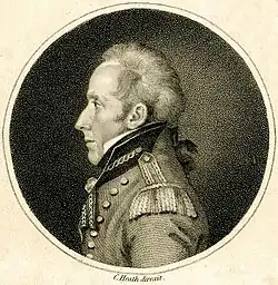 Following the outbreak of the French Revolutionary Wars his regiment was posted to the Mediterranean and he served at the Siege of Toulon in 1793. After the withdrawal he joined the army engaged in the Invasion of Corsica and led the 1,200 strong army at the Siege of Bastia. At the conclusion of the siege he was appointed governor of the town and in 1796 led a force to put down a rebellion inland, although terms were reached before he could press the attack. He returned to Britain late in the year and in 1797 briefly joined an expedition to Portugal as the colonel of the 1st Dragoon Guards. He later served in the household of Prince Edward, Duke of Kent and Strathearn.[1]