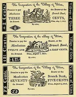- ^ Hunnting became the second president of the Bank of Utica in 1813, one after the bank was founded, and was annually re-elected up until the year he died in 1846.[12]
