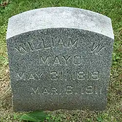 In 1910, Mayo became interested in the extraction and distillation of alcohol from animal and vegetable wastes, and one day suffered a serious injury when the extraction mechanism crushed his arm and hand. That injury necessitated an amputation. Complications resulted in his death in March 1911, shortly before Mayo's 92nd birthday. His wife died in 1915. They are buried next to each other at Oakwood Cemetery in Rochester.