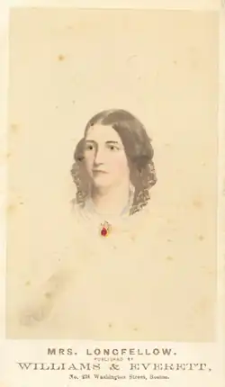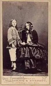 "In the store are departments for etchings, engravings, water colors and photographs. If you desire to purchase a fine impression, a rare proof, a unique etching, a carbon reproduction of a favorite picture by one of the old masters, or a representative work of the modern schools, if you want instructive photographs of ancient sculptures or classic ruins, you are sure to find them in the ample folios of this establishment."[14] The firm published its own pictorial reproductions of selected artworks, such as a chromolithograph of the character "Dotty Dimple" (after Elizabeth Murray),[38] and photographic portraits of H.W. Longfellow and his family.