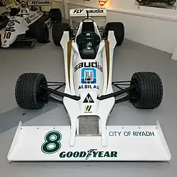 With major sponsorship secured from Saudi Arabian Airlines and TAG, the FW06 first took to the racetrack in the 1978 Argentine Grand Prix in the hands of Alan Jones, and a single car competed in all 16 rounds of the World Championship that season, finishing in the points 3 times including a second place at Watkins Glen, equalling Williams best result at the 1975 German Grand Prix.[4] An excellent drive by Jones at Long Beach was unrewarded. While running second the car developed mechanical trouble and fell back.[5] Jones liked the car, stating that it was pleasant to drive and was very drivable compared to previous machinery he had been given, and felt it was one of the best non ground effect cars that season.[6] The higher budget afforded by the sponsorship deal allowed Patrick Head to continually develop the FW06 throughout the year.[7] Williams finished ninth in the constructors' championship in 1978, matching the best performance by the team in its first incarnation achieved in 1975.[8]