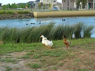 The major wetland at Williams Landing provides habitat for many birds, reptiles and frog species. The water level varies over the weather and the fauna responds similarly. Australasian bittern and other birds that migrate from Japan prefer more shallow water when wet grassy verges are available, whereas the black swan and Australasian shoveler like deeper water and are increasingly seen when water levels are high.[39]