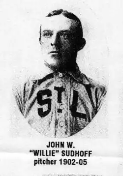 John William (Wee Willie) Sudhoff (September 17, 1874 – May 25, 1917) was a starting pitcher in Major League Baseball who played in the National League for the St. Louis Browns (1897–1898), Cleveland Spiders (1899), St. Louis Perfectos (1899) and St. Louis Cardinals (1900–1901), and with the St. Louis Browns (1902–1905) and Washington Senators (1906) of the American League. Sudhoff batted and threw right-handed. He was born in St. Louis, Missouri.