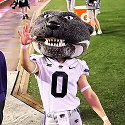 Willie Wildcat is the official mascot for the Kansas State Wildcats. He is typically depicted as having a human body with a giant wildcat head.
