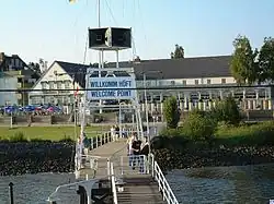 The Schiffsbegrüßungsanlage Willkomm-Höft (literally, Ship Greeting Station Welcome Point, Höft being Low German for headland or point) is a facility at the Schulauer Fährhaus (Schulau Ferry Building, a restaurant) in Schulau, the southern district of Wedel on the Lower Elbe. It was founded by Otto Friedrich Behnke on 12 June 1952. Currently, it is sponsored by Nautische Kameradschaft HANSEA.[1]