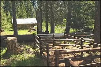 There are over nineteen miles of horse trails in the forest surrounding Willow Prairie Cabin. As a result, horseback riding is the reason many visitors come to Willow Prairie. The cabin is adjacent to the Willow Prairie campground and horse camp. The campground has ten campsites each with a picnic table and fire pit along with four 12-foot by 12-foot corrals. The campground has two vault toilets. There is also potable water from a hand-pumped well plus two troughs for watering horses. To protect the Willow Prairie meadow, riders are required to stay on marked trails, and horses must be kept in a corral when not being ridden. The Forest Service provides a trailer for manure, which must be cleared from camp corrals before departure.[2][4][5]