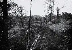 Rohr neglected the tactical training of the army up to the Battle of Verdun.[4] The successful testing of the new methods was carried out by Infantry Regiment No. 187 west of Colmar in the Vosges. The Sturmabteilung Rohr was committed to the re-conquest of the Hartmannsweiler Kopf in December 1915. When its next deployment, the attack on the Hirzstein, failed, it withdrew to carry out more intensive preparations. After completion of the preparations, the place was captured with the help of two regiments inexperienced in battle, Nos. 188 and 189, in January 1916.[5] By successfully employing the Storm Detachment in various sectors of the front, Army Detachment Gaede trained itself and the stationary troops. In December 1915, the first training course in the technique was held in the general's presence on the Schlossberg at Achkarren[6] As a result of its success the detachment was moved in February 1916 to the 5th Army (Crown Prince Wilhelm) to take part in the Verdun offensive.