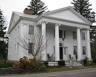 Wilmot Mansion is a historic home located at Bethany, Wayne County, Pennsylvania. It was built in 1827, and is a two-story, wood-frame dwelling in the Greek Revival style. It features a pedimented portico supported by four columns. It was the boyhood home of Congressman, Senator, and abolition advocate David Wilmot (1814-1868).[2]