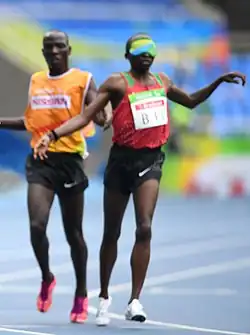 ![]() Wilson Bii and his guide Benard Korir after finishing the 5000 m race at the 2016 Olympics | |||||||||||||||