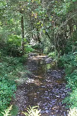In the past, the flow of Wilson Run was restricted by fallen trees, logs, gravel bars, and rocks. This restriction caused erosion of the banks of the stream. However, its channel was restored by 1980.[6] Sandstone belonging to the Trimmers Rock Formation have been observed near Wilson Run.[7]