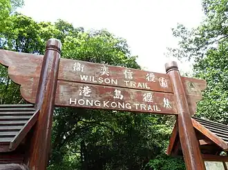 The Wilson Trail (Chinese: 衛奕信徑) is a 78-kilometre (48 mi) long-distance footpath in Hong Kong, 63 km of which runs through Hong Kong country parks.[1] It was named after David Wilson, Baron Wilson of Tillyorn, who was penultimate Governor of Hong Kong from 1987 to 1992. The Wilson Trail was developed by Friends of the Country Park and sponsored by various private organisations. The construction work of the trail began in 1994. The Wilson Trail was first opened on 21 January 1996.