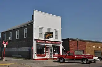 Wilton Candy Kitchen is a combination ice cream parlor, soda fountain and confectionery store located in Wilton, Iowa, United States. The two-story wood-frame building has a gable roof that is obstructed on the main facade by a false front. It retains its interior from 1922.[2] The shop was founded in 1867, and it is considered to be the oldest continuing business of its type in the United States.[3] The business was bought by Gus Nopoulos, a Greek immigrant who worked in his uncle's candy store in Davenport, Iowa before he bought this store in 1910 with Nick Parros. The building already contained the candy making equipment, a soda fountain, and other furnishings. In 1913 Nopoulos bought the building and bought out his partner. The tin ceiling was installed in 1915. He acquired the interior furnishings from the Elite Confectionery in Davenport and had them installed here in 1922. Gus Nopoulos continued to be involved with the shop until his death in 1983.[2] His son George and daughter-in-law Thelma were also involved in the operation of the business.[4]