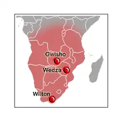 Originally defined from archaeological assemblages recovered from Wilton rock shelter in 1921, archaeologists use Wilton to refer to stone age foraging and pastoral communities in portions of east Africa and throughout South Africa that are associated with small stone tools and an increase in the number of formal stone tools like scrappers and backed tools.[2][3] Archaeological assemblages in Zambia contains evidence for non-stone technology that has led some archaeologists to hypothesize an increased importance of wooden tools Wilton tool sets.[4][5]