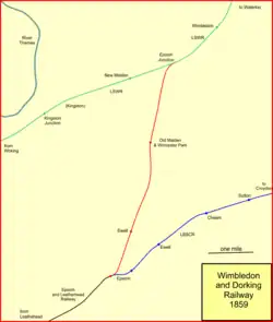 The Wimbledon and Dorking Railway (W&DR) was an early railway company in southern England. It was independently promoted with the intention of penetrating into West Sussex, but it only succeeded in getting authorisation as far as Epsom. It joined the Epsom and Leatherhead Railway there, and opened in 1859.