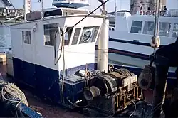 This is a vertical spool with a ratchet mechanism similar to a conventional winch, but with no crank handle or other form of drive.[7] The line is wrapped around the spool and can be tightened or reeled in by pulling the tail line. The winch takes the load once the pull is stopped with little operator tension needed to hold it. These also allow controlled release of the tension by the operator using the friction of the line around the ratcheted spool. They are used on small sailing boats and dinghies to control sheets and other lines, and in larger applications to supplement and relieve tension on the primary winches.