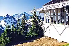 The historical Winchester Lookout, located in the North Cascades in the U.S. state of Washington, provides views of the Northern Picket Range, Mount Baker, Mount Shuksan, Mount Larrabee, and Canadian peaks. The steep snowfields usually require an ice-axe well into July. The Twin Lakes road may not be passable to the trailhead which will add 2 miles (3.2 km) to the hike. Volunteers from the Mount Baker Club maintain the lookout with 2 work parties per year.[2]