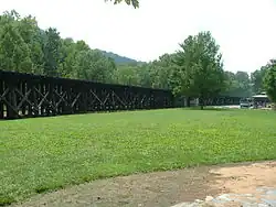 The W&P was of potential value to the Confederates for any need to attack Harpers Ferry[6] and did serve a useful role in the movement of Virginia Militia troops to defensive positions in and about Harpers Ferry.[7] Although it could potentially be used to feed Confederate forces into the defenses of western Virginia via the B&O, by running along the northern border of the Confederate states, it would have been vulnerable to attack, possibly stranding large units to the west. So, due to its very northern location, and mere spur-like connection to the B&O, its overall potential usefulness to the Confederacy was not great.[6] The greatest use and value in the W&P came in the first eight months of the war, from May 1861 to January 1862, when it was utilized to ship light machinery from the Harpers Ferry arsenal down to Winchester, and from there overland to Strasburg and the Manassas Gap Railroad. The light strap rails did not permit heavy shipments, and this was a constant factor until late in the war.[8]