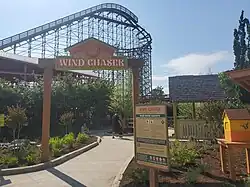 According to park officials, Wind Chaser utilized some components of Twisted Twins' structure as a budgetary feature, but is otherwise a completely new experience.[21] Wind Chaser utilized Rocky Mountain's IBox steel track system to create a ride experience that has the smoothness of a steel coaster with the faster pace of a wooden coaster.[21] The new track also allows the train to perform inversions, something not normally seen on wooden roller coasters.[21]