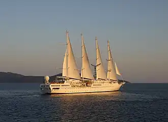 Wind Spirit is a motor sailing yacht, sailing as a cruise ship for Windstar Cruises. She is one of an unusual class of only three vessels (Wind Star, Wind Spirit and Wind Song), designed as a modern cruise ship but carrying an elaborate system of computer-controlled sails on four masts.