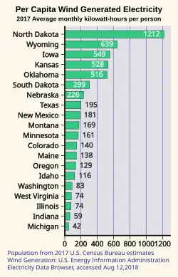 - ^ a b "North Dakota Wind Energy". U.S. Wind Energy State Facts. American Wind Energy Association. Retrieved 10 March 2019.