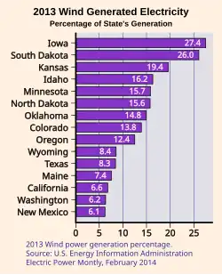 - ^ "South Dakota Wind Energy" (PDF). U.S. Wind Energy State Facts. American Wind Energy Association. Retrieved 27 December 2017.