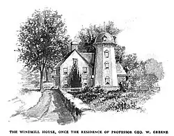 The windmill allegedly inspired Longfellow's poem, "The Windmill."[2] About ten years after it was attached to the home, Longfellow sent Greene a copy of the poem and, in a letter dated April 18, 1880, speculated "I think this is the first ever poem on the subject." It was published in The Youth's Companion issue for May 27, 1880, edited by Hezekiah Butterworth.[7]