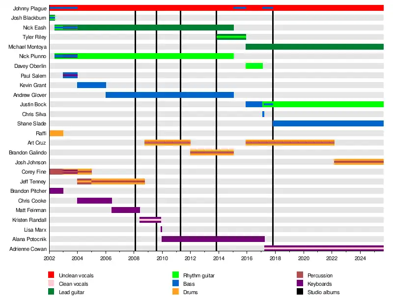 - Jonathan "Johnny Plague" Cooke-Hayden – unclean vocals (2002–present); bass (2002–2004, 2015, 2017–2018)