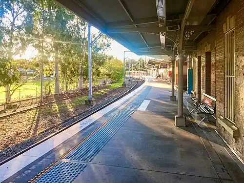Windsor railway station is a heritage-listed suburban railway station located on the Richmond line, serving the Sydney suburb of Windsor. It is served by Sydney Trains T1 Western Line and T5 Cumberland Line services. The property was added to the New South Wales State Heritage Register on 2 April 1999.[3]